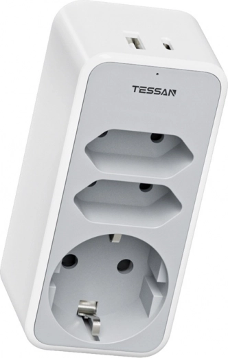 La prise murale Tessan est la solution idéale pour ceux qui recherchent une combinaison de spaciosité, de fonctionnalité et d’esthétique. Grâce à ses dimensions compactes (5 x 4 x 10 cm), elle facilite l’organisation des câbles et le maintien de l’ordre. L’appareil propose 5 prises, dont une prise Schuko, deux prises EU, ainsi que des ports USB, ce qui simplifie la charge de différents appareils en un seul endroit.