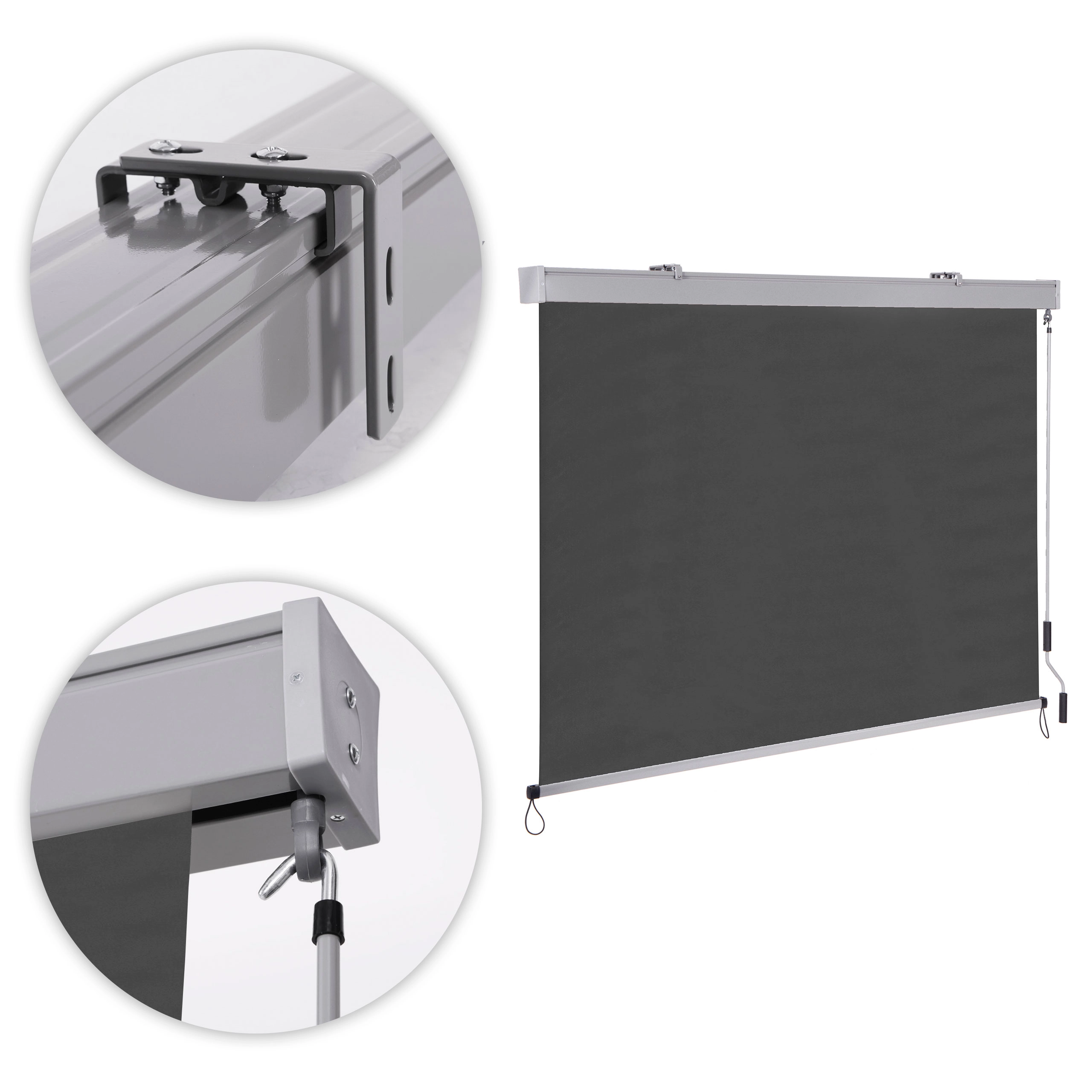 installation simple et rapide. Tous les composants nécessaires sont inclus. Le store se fixe sur deux supports métalliques, vissés au mur avec des chevilles.