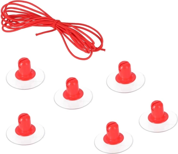 Les ventouses et la corde rouge délimitent la surface de jeu en un instant. Deux cages légères avec filet prêtes à l’action – jouez partout à la maison.