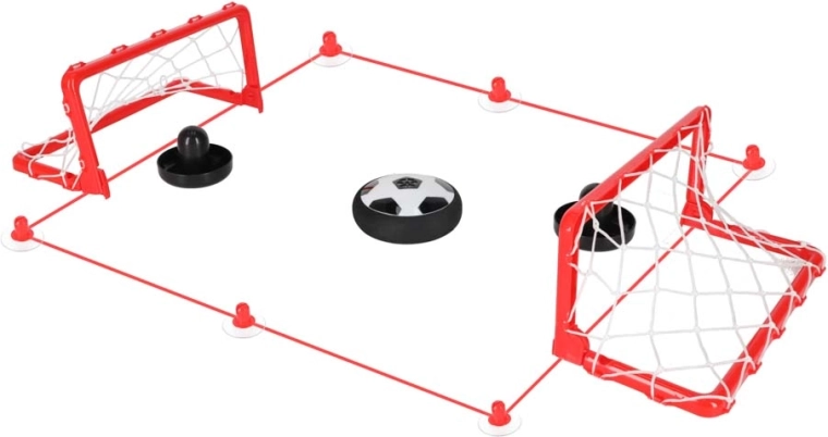 Jeu d’intérieur ludique qui combine hoverball et air hockey pour deux joueurs. La balle lévitante avec éclairage LED glisse en douceur sur la table grâce au coussin d’air, le pare-chocs souple protège les meubles et les ventouses avec corde délimitent rapidement le terrain. Idéal pour des matchs familiaux rapides, le développement de la coordination et de la dextérité des enfants dès 3 ans.