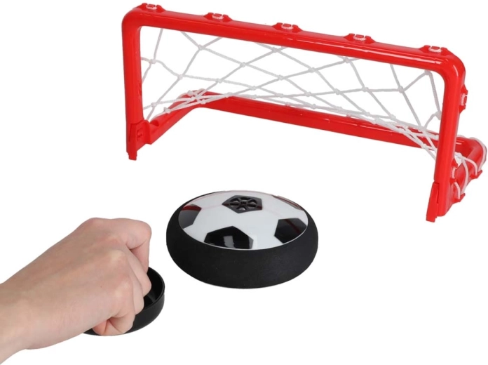 Balle au style ballon de football qui s’illumine et, grâce au coussin d’air, se déplace en douceur sur la table comme sur le sol. La bordure en mousse souple protège l’environnement.