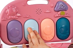Ce tapis d’éveil rose crée un espace sûr et stimulant pour le jeu quotidien. L’arche colorée avec jouets suspendus encourage le bébé à tendre la main et à saisir, renforçant ainsi la coordination œil-main. Le piano interactif avec touches rétroéclairées propose 3 modes sonores – notes de la gamme Do–Ré–Mi–Fa, sons courts (par ex. rires de bébé) et mélodies plus longues – contribuant au développement de l’ouïe et du sens du rythme.