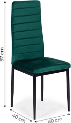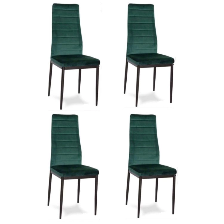 Ce lot de quatre chaises de salle à manger est un excellent choix pour votre salle à manger ou votre salon. Vous apprécierez leur design moderne et leur velours vert au toucher agréable. Grâce à leur dossier profilé haut et à leur rembourrage en mousse de haute qualité, elles offrent un confort optimal. Les pieds en métal noir confèrent aux chaises une allure élégante tout en garantissant la stabilité.