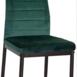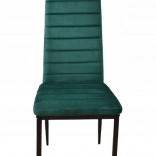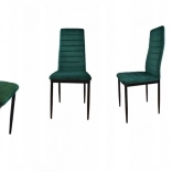 Les chaises présentent un design moderne alliant le vert du revêtement à des pieds en métal noir, un choix idéal pour les intérieurs contemporains.