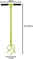 La hauteur réglable de 90–100 cm s’adapte à votre taille, vous permettant de travailler debout sans douleurs dorsales. Les dents spiralées mordent facilement dans la terre, améliorent sa structure et la préparent au semis ou à la plantation. Idéal pour les plates-bandes, les bordures et les espaces entre les rangs.