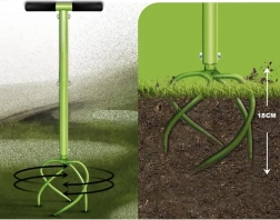 Les doubles pointes spiralées pénètrent la terre, brisent les couches compactées et améliorent la circulation de l’air et de l’eau. Idéal pour préparer les plates-bandes avant la plantation.