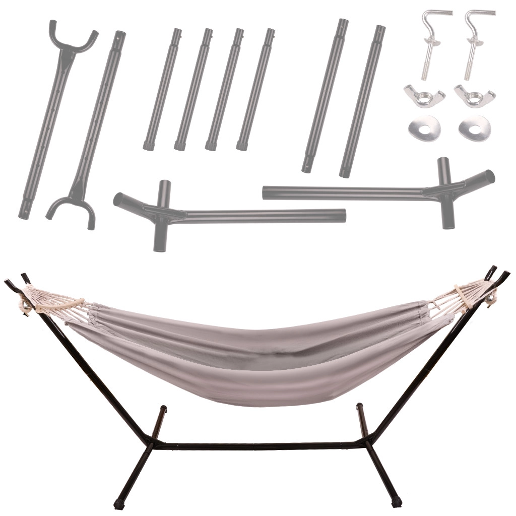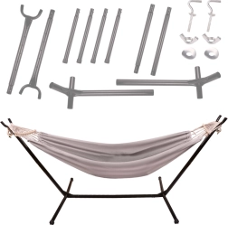 - hamac, support métallique (10 pièces), outils de montage, notice, sac de transport 72 × 18 × 23 cm