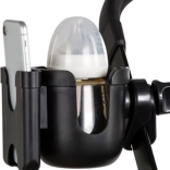 Support pratique pour boissons et téléphone, qui s'attache facilement à une poussette, un vélo ou autre surface, assurant que vous ayez les deux toujours à portée de main.