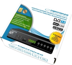 Le décodeur moderne de diffusion numérique terrestre DVB-T/T2 avec affichage de la marque Esperanza permet la réception gratuite de la télévision numérique en haute définition. Il prend en charge les normes MPEG-2, MPEG-4 H.264/AVC et H.265/HEVC pour l'image et les normes MPEG-1 et E-AC3 pour le son. Haute résolution d'image, compatibilité étendue, fonction d'enregistrement intégrée sont parmi ses caractéristiques clés.