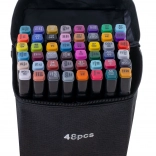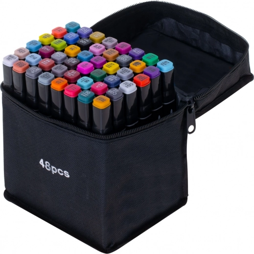 48× marqueurs de différentes couleurs, support en plastique, étui textile