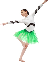Cette jupe tutu verte est conçue avec un souci du détail : trois couches de tulle plus ferme et abondamment froncé gardent la forme et créent un volume spectaculaire. La ceinture élastique est recouverte d’un ruban satiné assorti pour plus de confort et une jolie finition.