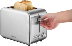 Le grille-pain est équipé de pieds antidérapants et d'un plateau ramasse-miettes pour un nettoyage aisé.
