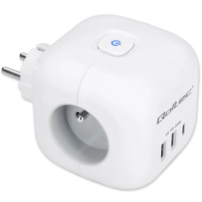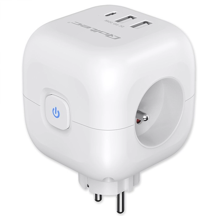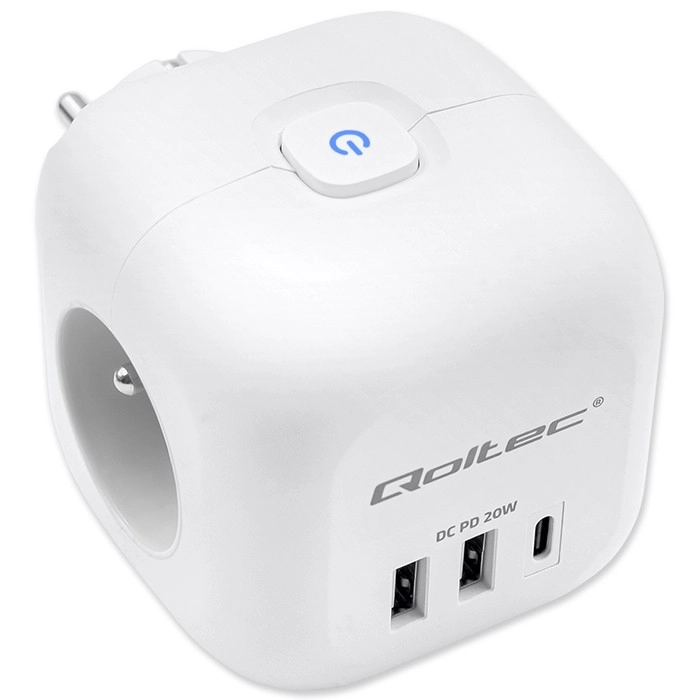 Le design compact du cube d'alimentation permet une organisation facile de 3 prises CA sur les côtés pour une connexion confortable même des plus grands connecteurs. À l'avant, vous trouverez 2 ports USB-A et 1 port USB-C PD 20W, vous pouvez donc facilement charger votre téléphone, tablette ou écouteurs sans nécessiter d'autres chargeurs.