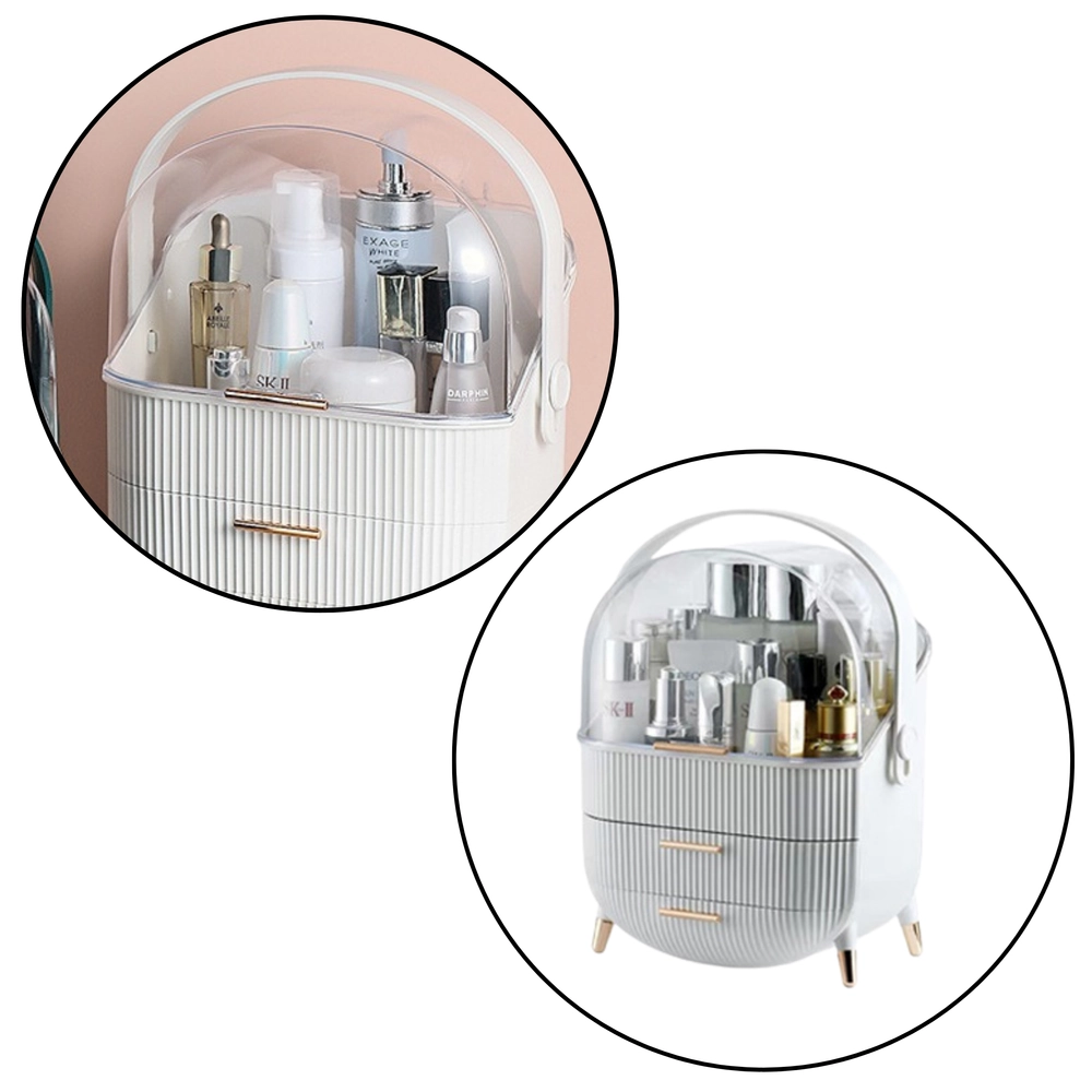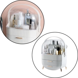 Grâce à sa construction spacieuse de 37 x 25 x 18,5 cm, l’organiseur accueille facilement divers produits : pinceaux, fards, rouges à lèvres, flacons de parfum, crèmes et autres soins. Le couvercle transparent protège le contenu de la poussière et permet un aperçu rapide sans devoir ouvrir les tiroirs ou compartiments.