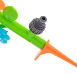 Le montage est on ne peut plus simple : plantez la pointe dans le sol, raccordez le tuyau d'arrosage via un raccord rapide standard et c'est prêt. La construction en plastique résistant tient plusieurs saisons et les couleurs vives invitent à jouer encore et encore.