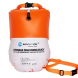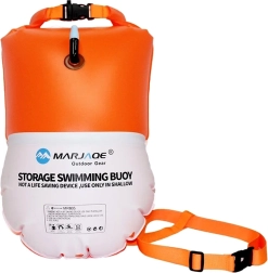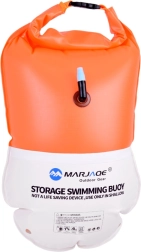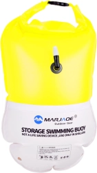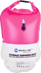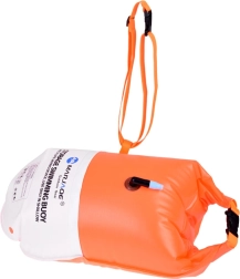 Cette bouée de natation type dry bag combine sécurité et rangement pratique en un seul produit. Le matériau PVC résistant, la fermeture roll-top avec boucle et la valve de gonflage séparée gardent vos effets au sec et la bouée bien gonflée. Sa couleur vive accroît nettement la visibilité pour les bateaux et les autres nageurs.
