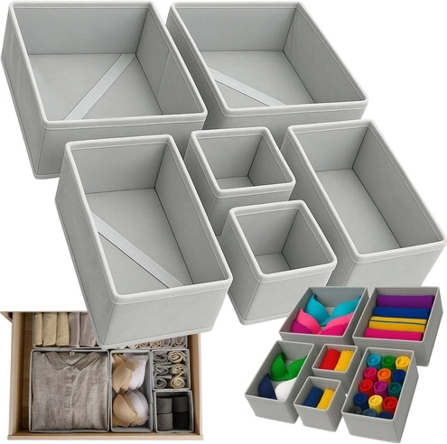 Gardez votre linge et vos accessoires toujours à leur place avec ce lot pratique d’organisateurs. Il comprend 6 pièces de tailles différentes, offrant une utilisation universelle et un entretien facile. La finition élégante gris clair s’intègre aisément à toute armoire. Chaque organisateur est conçu pour être stable et durable.