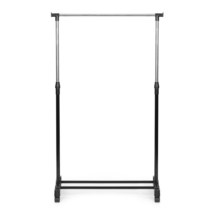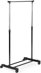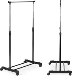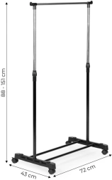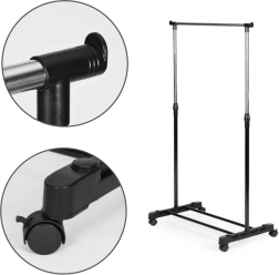 Les embouts aux extrémités de la barre principale du support garantissent la sécurité et éliminent le risque de glissement et d'endommagement involontaires des vêtements. La barre sert aussi de crochet pour suspendre des sacs, écharpes, chapeaux et autres petits articles. Le support de vêtements est équipé de quatre roulettes, dont deux sont verrouillables. Cela permet un mouvement facile et une organisation flexible de l'espace. C'est une solution pratique qui permet une adaptation aisée du support à vos besoins.