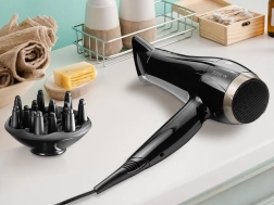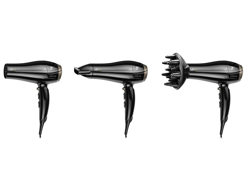 Concentrateur pour une mise en forme précise. Le flux d’air concentré et la haute puissance de 2200 W permettent un séchage rapide et un coiffage précis.