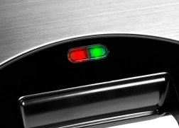 Le gaufrier GFH-001 est conçu pour préparer deux gaufres rectangulaires simultanément. Ses plaques sont revêtues d’une couche antiadhésive spéciale, ce qui garantit une cuisson de haute qualité et facilite le démoulage des gaufres. L’appareil dispose également de deux voyants de contrôle : le voyant rouge indique l’alimentation sous tension et le voyant vert informe sur le processus de préchauffage.