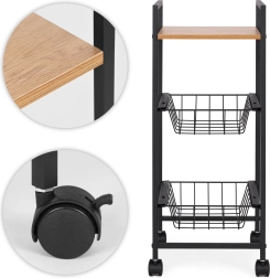 Cette étagère mobile ModernHome est une solution idéale de rangement pour différentes pièces. Vous pouvez l’utiliser dans la cuisine pour les épices et accessoires, dans la salle de bain pour les cosmétiques et les serviettes, ou au bureau ou dans la chambre d’enfant pour les petits objets. Grâce à sa taille compacte et à ses roulettes, vous la déplacez facilement partout où vous en avez besoin.