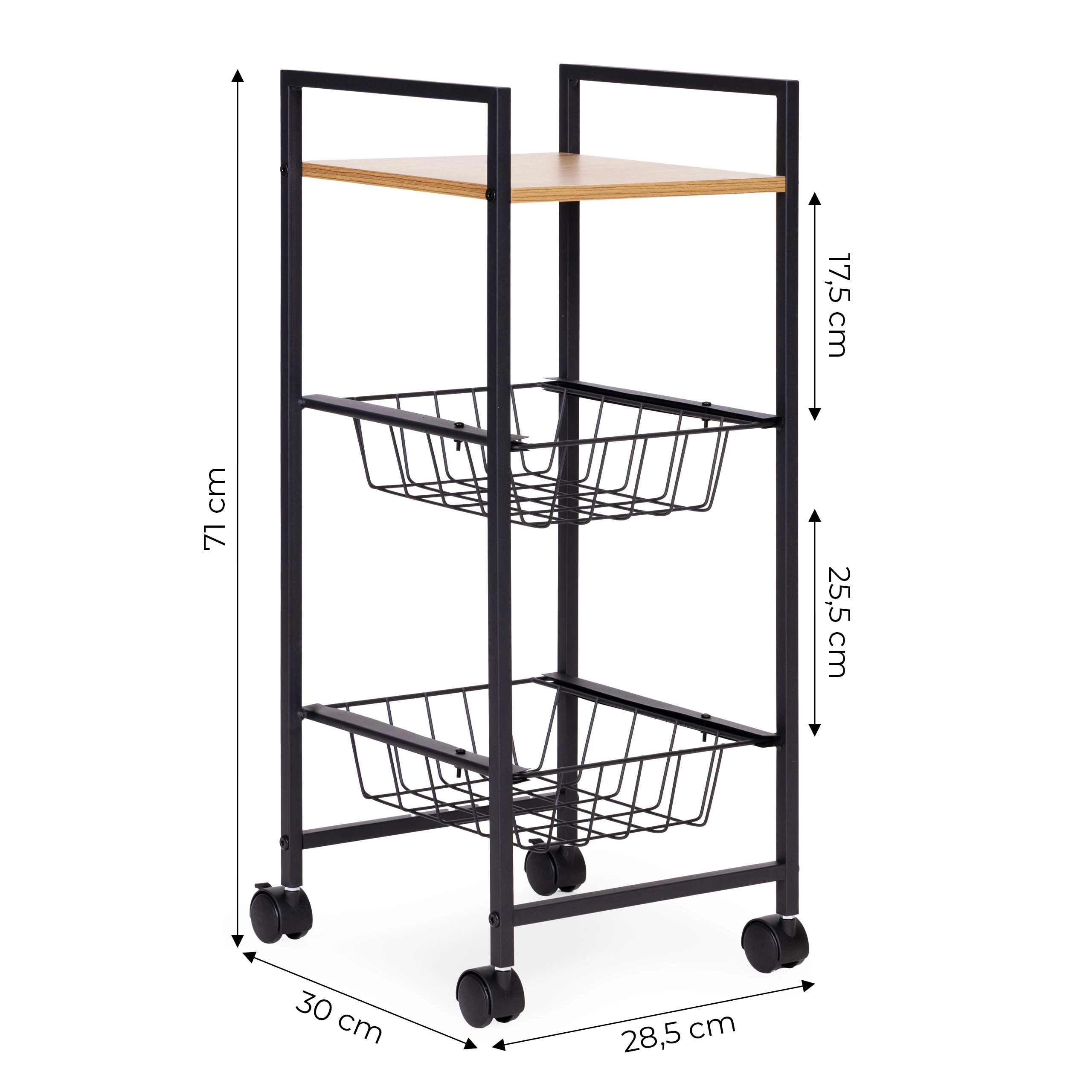 Matériaux de qualité – la tablette en MDF revêtu de mélamine est résistante à l’humidité et aux rayures, facile à nettoyer et idéale pour le rangement dans la cuisine ou la salle de bain. La structure métallique peinte par poudrage est résistante à la rouille et aux dommages, assurant stabilité et longévité.