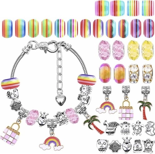 Kit créatif pour la fabrication de bijoux et de bracelets pour enfants offre de nombreuses perles colorées et des pendentifs de différentes formes, permettant de créer de beaux bracelets et colliers.