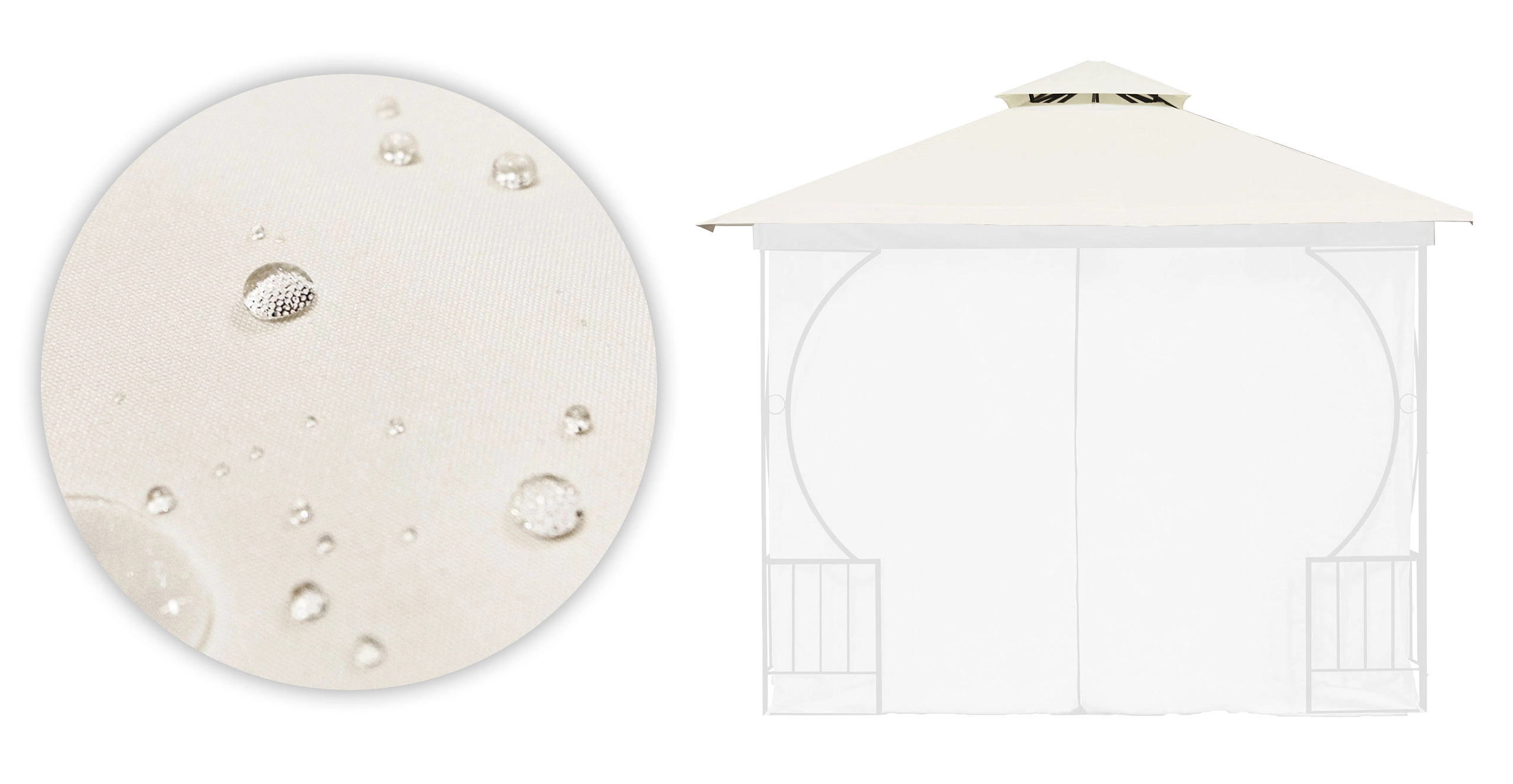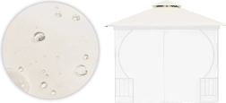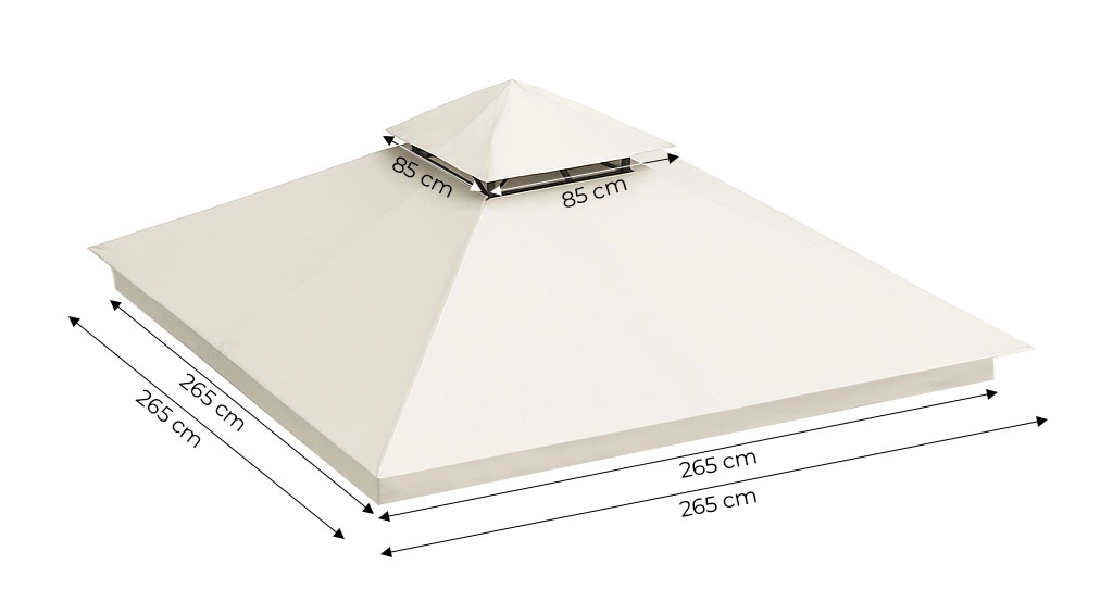 Le toit est fabriqué en polyester de densité 180 g/m², qui assure une haute résistance à la déchirure, à l'usure et aux intempéries. Il est idéal pour une utilisation en extérieur, étant imperméable, résistant aux UV et protégé contre la croissance des moisissures.