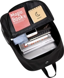 Élégant sac à dos noir en tissu Oxford résistant, il est résistant à l'eau et, grâce au dos et aux bretelles rembourrés avec maille MESH, il se porte confortablement toute la journée. L'impression réfléchissante et lumineuse améliore votre visibilité au crépuscule comme dans l'obscurité, ce qui le rend idéal pour les écoliers, en ville comme en excursion.