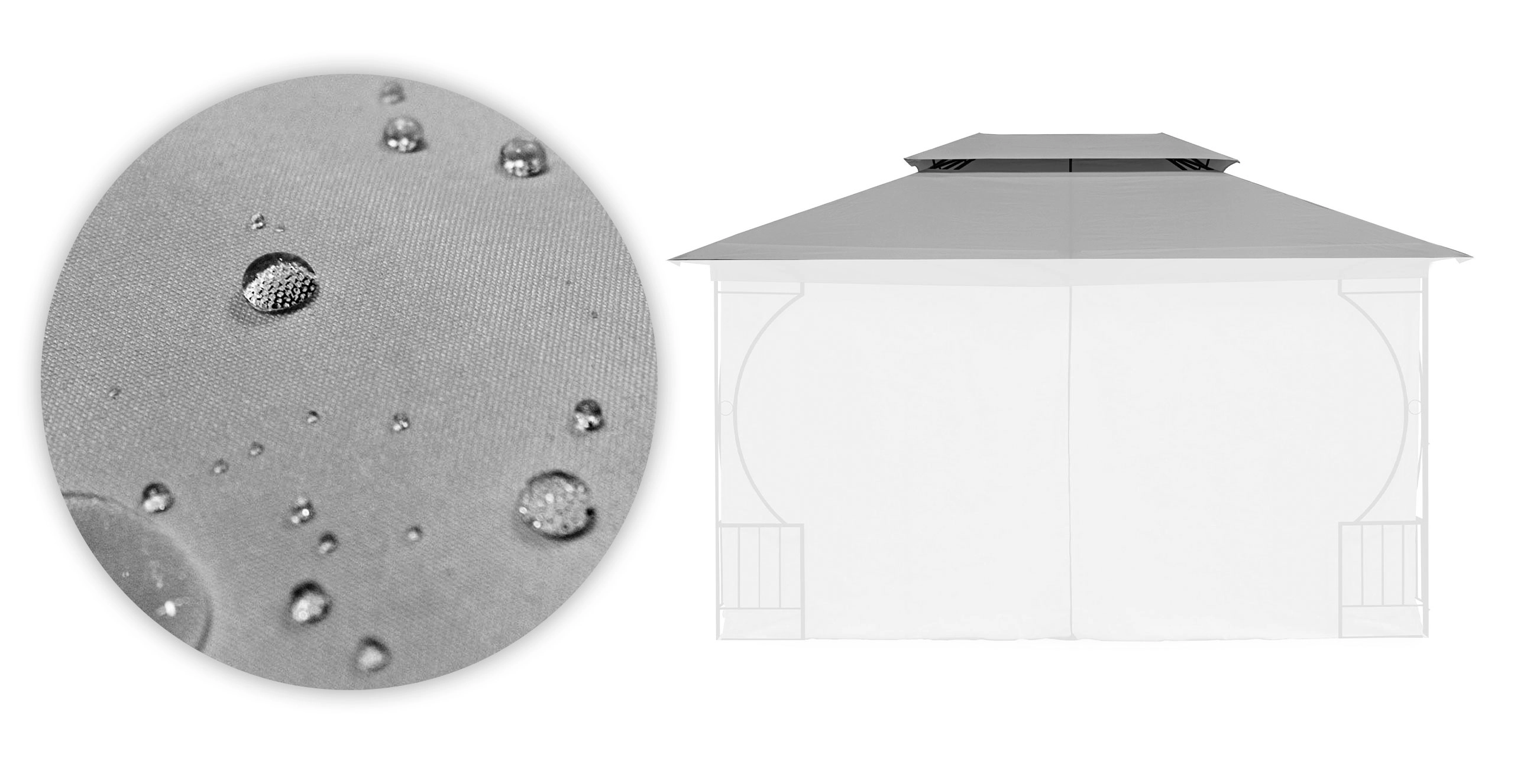 Matériau résistant : Le polyester 180 g/m² assure une haute résistance à la déchirure, à l’abrasion et aux intempéries. Le toit est imperméable, résistant aux UV et protégé contre les moisissures.