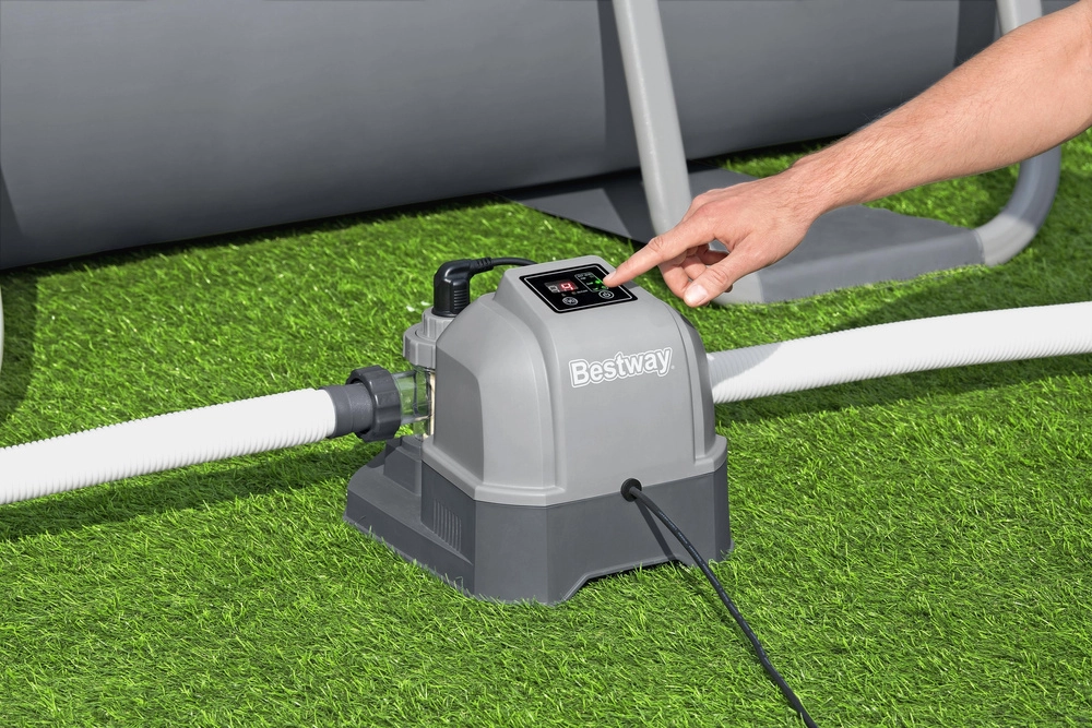 Le générateur de chlore Bestway propose une solution pour ceux qui souhaitent garder l'eau de la piscine propre sans utiliser de chlore classique. L'appareil transforme le sel en chlore naturel, ce qui nettoie efficacement l'eau et détruit les bactéries. La baignade est plus confortable, sans irritation des yeux ni de la peau.