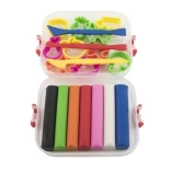 Ensemble de pâtes à modeler et moules dans une boîte en plastique