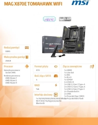 La carte mère MSI MAG X870E Tomahawk Wi‑Fi est conçue pour les joueurs qui exigent fiabilité, durabilité et installation aisée. Elle offre le Wi‑Fi 7, un réseau 5G LAN et des options PCIe 5.0 pour les tout derniers processeurs AMD Ryzen 9000.