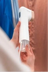 Le défroisseur vapeur MPM moderne dispose d’un panneau de commande tactile permettant d’allumer/éteindre l’appareil d’une main et de changer de mode. Adaptez la puissance de vapeur au type de tissu. Utilisez le mode éco pour les petits plis ou pour rafraîchir les matières. Le réservoir d’eau amovible (95 ml) assure plusieurs minutes d’utilisation. Un signal sonore et une icône clignotante sur l’écran indiquent le manque d’eau. Pour défroisser, utilisez la tête en acier inoxydable seule ou avec l’embout brosse.