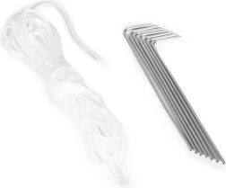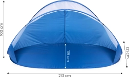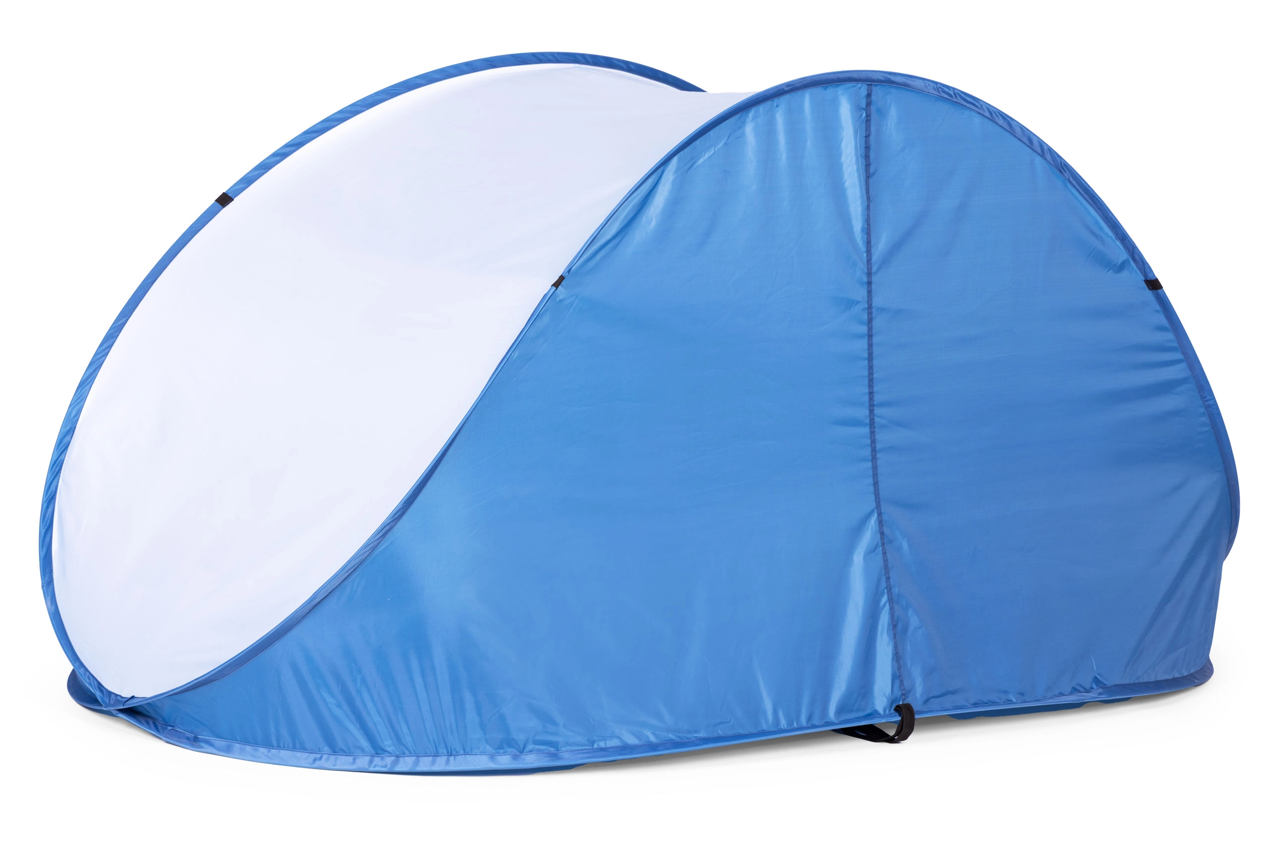 La tente comporte des points de fixation spéciaux pour un ancrage stable au sol. Grâce aux boucles cousues et aux cordelettes fournies, vous pouvez sécuriser rapidement la tente contre le vent – à la plage comme au jardin.