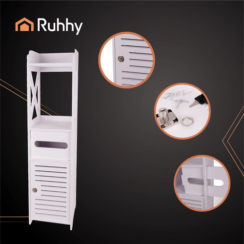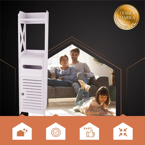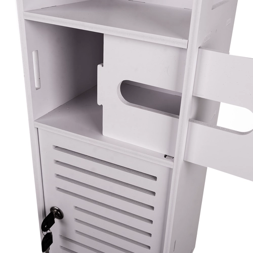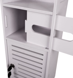 L’armoire de salle de bain sur pied blanche est une solution pratique pour ranger les cosmétiques et les produits d’entretien. Grâce à la fermeture à clé, elle protège le contenu des enfants et offre un design esthétique qui s’adapte à toute salle de bain.