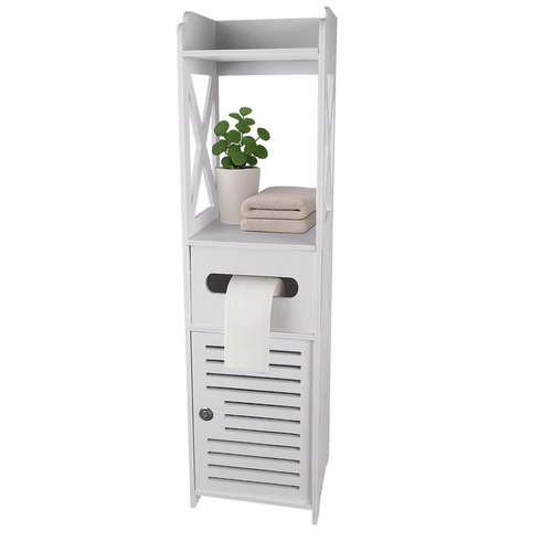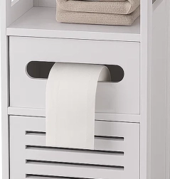 - Espace de rangement supplémentaire pour serviettes, papier toilette, cosmétiques et produits de nettoyage.