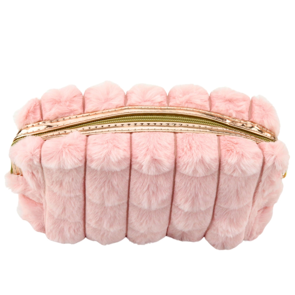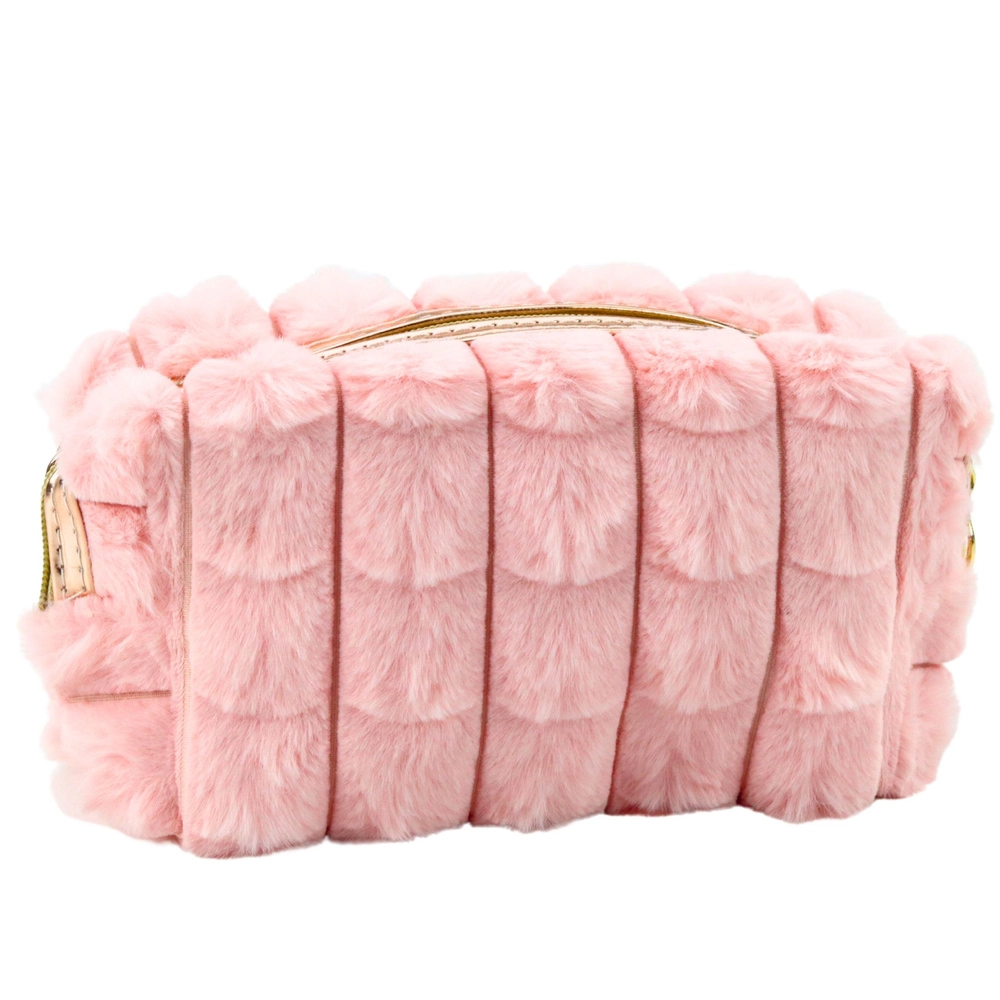 Élégante et douce au toucher, la trousse de toilette en peluche est l’accessoire idéal de tous les jours. Fabriquée dans un matériau pelucheux et moelleux de couleur rose tendre, elle est non seulement jolie, mais se distingue aussi par sa praticité. Son design moderne suit parfaitement les tendances actuelles et elle est équipée d’une fermeture éclair brillante et d’une poignée décorative couleur or rose.