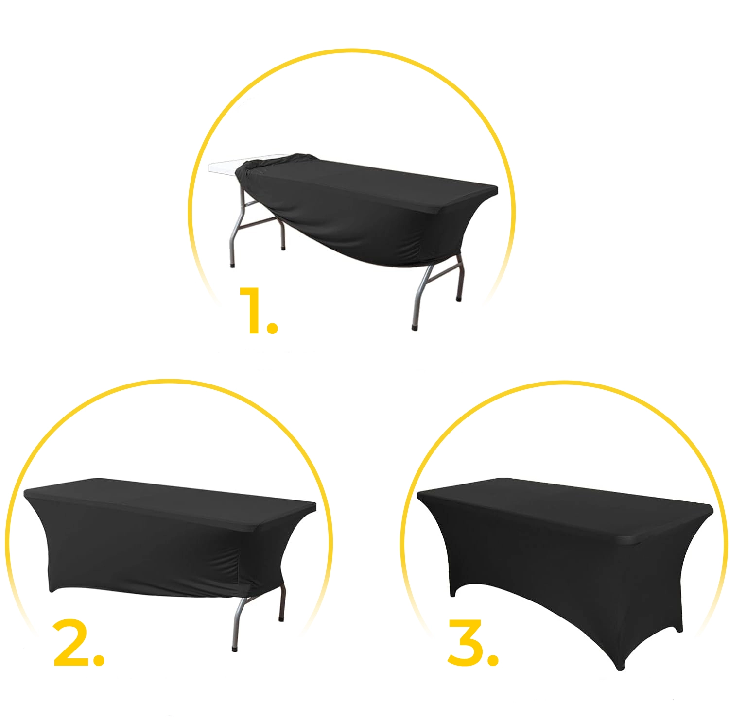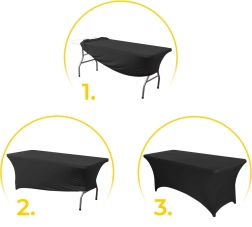 Cette housse élastique universelle pour table est idéale pour les tables de 240 cm, apporte une touche d’élégance à chaque événement et résiste aux taches.