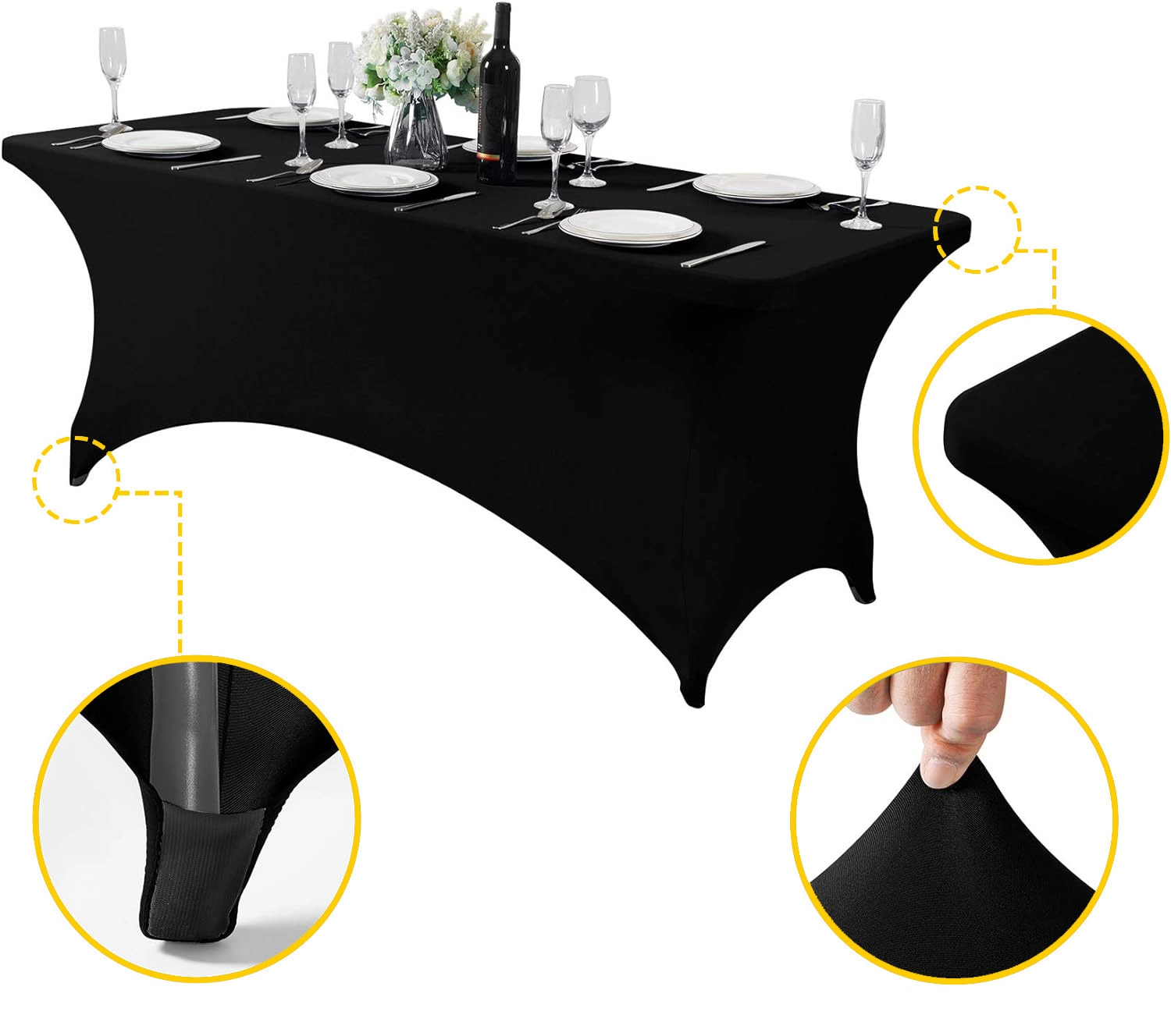 - Poches spéciales : Permettent une fixation sûre sur les pieds de la table, garantissant une tension durable du tissu sans glissement.
