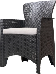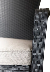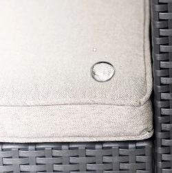 Un design bien pensé propose des coussins hydrofuges qui protègent de l’humidité et sont faciles à nettoyer. La structure est réalisée en polypropylène résistant avec une finition de style rotin synthétique, offrant une allure élégante et moderne ainsi qu’une résistance aux UV et à la pluie. La surface lisse se nettoie aisément et conserve son aspect saison après saison.