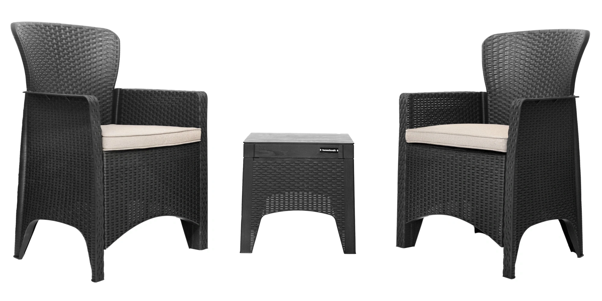 Ensemble de mobilier de jardin pour terrasse ou balcon – 2 fauteuils + table noire