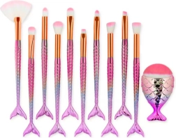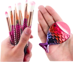 Le set inclut des pinceaux pour toutes les étapes du maquillage – de l’application du fond de teint, au blending des fards, jusqu’au contouring précis. Les poils synthétiques doux sont délicats pour la peau et les manches ergonomiques arc‑en‑ciel en forme de queue de sirène tiennent bien en main tout en embellissant chaque trousse de maquillage.