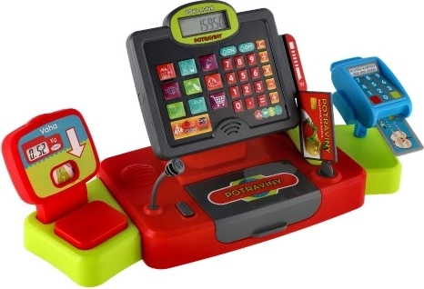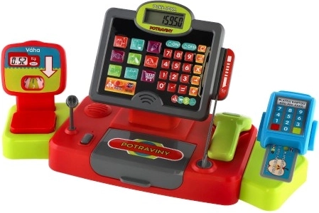 - Effets lumineux et sonores, calculatrice fonctionnelle, lecteur/fente pour carte de crédit, balance pour fruits et légumes