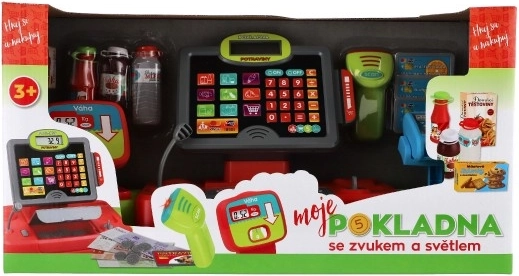 La grande caisse enregistreuse pour enfants transforme chaque coin en petite boutique. Elle offre des effets lumineux et sonores, une calculatrice fonctionnelle, un lecteur de cartes et une balance pour fruits et légumes. Inclus : fausses billets, pièces et aliments. Alimentation 2× AA (non incluses). À partir de 3 ans.