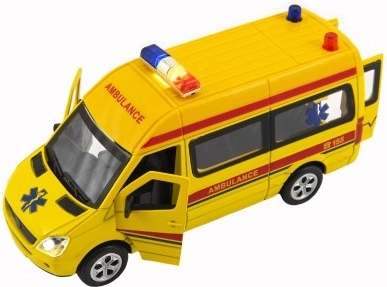 Cette ambulance détaillée combine un châssis métallique solide avec des éléments en plastique résistants et est idéale pour le jeu créatif. Grâce à la rétrofriction, elle roule sans télécommande, tandis que les portes avant et arrière ouvrantes renforcent l’authenticité et l’interactivité.