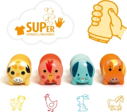 - 4 tampons auto-encreurs (vache, poule, lapin, cheval)