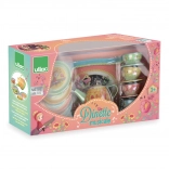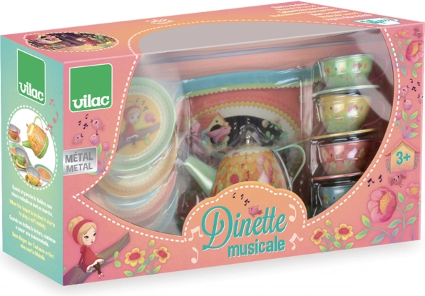 Organiser un goûter n’a jamais été aussi magique qu’avec le service à thé Vilac Musical. Ce set en métal séduit par ses illustrations féeriques sur le thème de la « forêt magique » et par son élément musical unique. Lorsque l’on incline la théière, une douce mélodie se déclenche, ajoutant une touche d’enchantement au jeu.