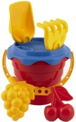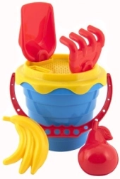 Dans cet ensemble, vous trouverez tout ce dont vous avez besoin pour jouer avec le sable, y compris un seau, un tamis, une pelle, un râteau et deux moules.