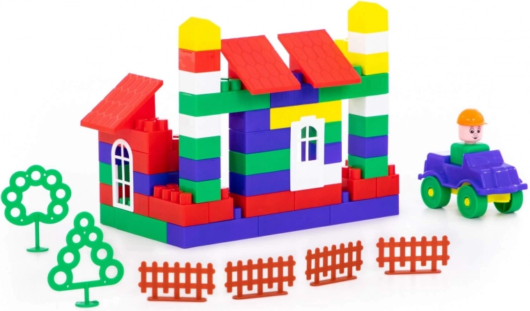 Le set contient une large gamme de blocs multicolores qui stimulent le développement de la créativité chez les enfants.